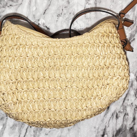stråveske, strandveske, hyasint, straw, natur, skinn