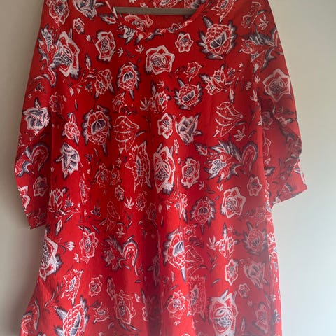 Korallfarget t-skjorte med blomstret mønster i hvitt og cerise-Marie Philipe selges. Nesten ikke brukt.