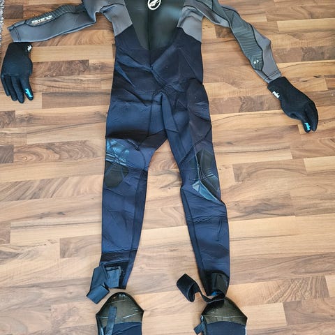 Ny våtdrakt, lappen er fortsatt på. Str s/m. Er selv en str s.