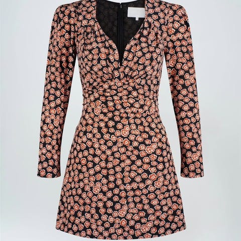 Feminin kjole i en delikat silkekvalitet med noe stretch. Modellen er designet med små vertikale legg i front, smale ermer, figurnær silhuett, hjerteformet bryst, små vertikale legg fra midjen og opp til brystet.