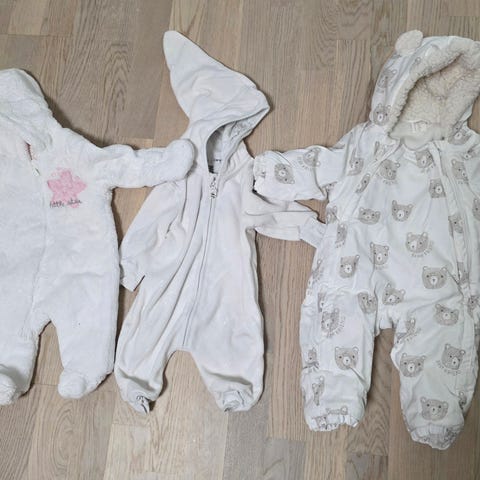 Unisex vinterklær til baby str 56-62 men brukt samtidig. Nøytrale klær som passer både til gutt og jente. Selges samlet.