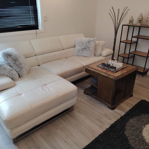 Uttrekkbar liten sofa/pall i skinn (kvit)