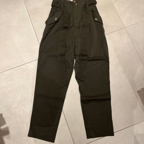 «Cargobukse» med mange detaljer. Kvalitet: 60%bomull og 40%polyester. Kjempetøff, spesiell bukse.
