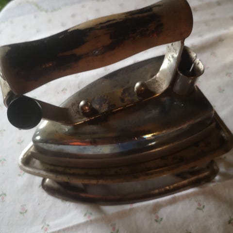 Antikk strykejern til å varmes opp på vedkomfyr/vedovn.