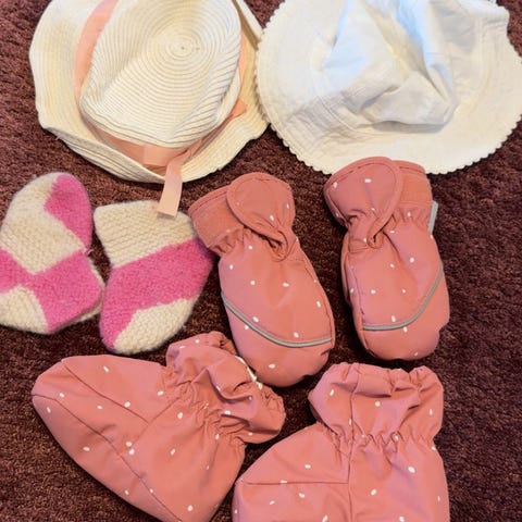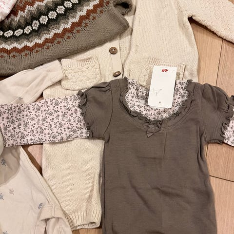 Pent brukte klær. Mest strl 74, en genser i strl 68 og er skjørt i 62, men de er store i strl.