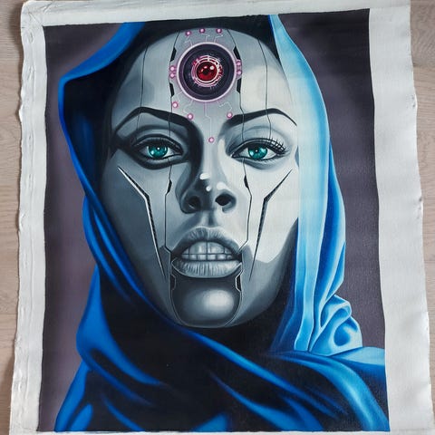 Street artist. Covid-19 inspirert stencil spray på canvas. Bredde 44cm Høyde 53cm