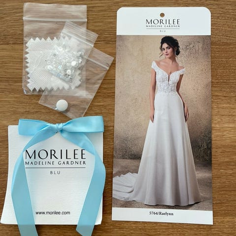Selger denne nydelige brudekjolen i fargen ivory av merket Mori Lee by Madeline Gardner. Stor og fin "prinsessekjole" med fine perler!