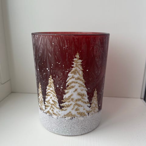 passer oppi glasset. Motivene er reinsdyr, julenisse, slede og stjerner. Når telyset brenner i glasset, skinner flammelyset helt nydelig gjennom motivene 🌟🌟