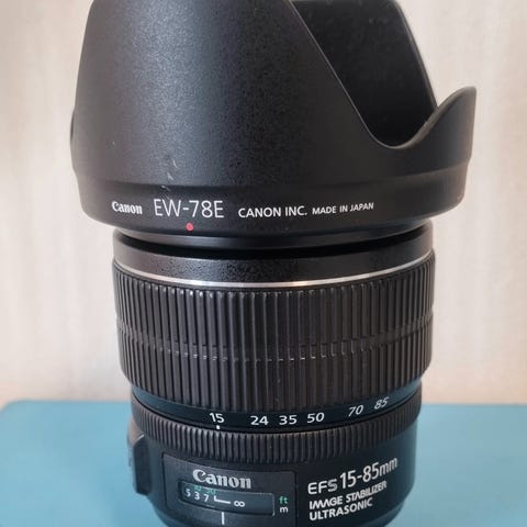 1-Canon EF-S 15-85mm f/3.5-5.6 IS USM , Mcaro -image stabilizer med Solblender for 2200 kr-tilgjengelig.