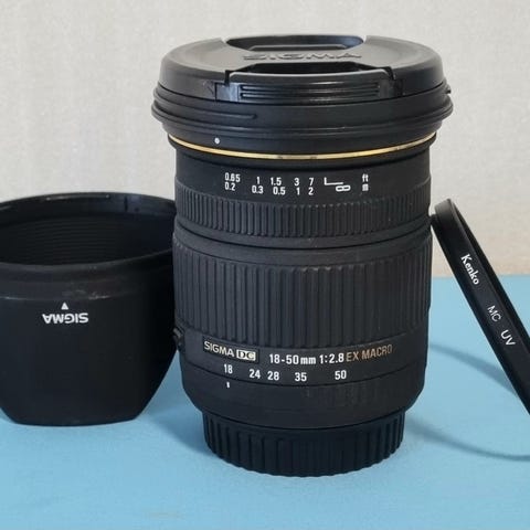 1-SIGMA DC 18-50mm f/2.8 EX Macro med Solblender og Kenko UV Filter 72mm til Canon for 1150kr.
