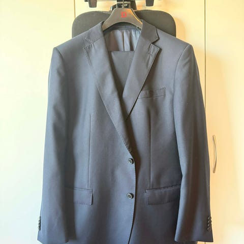 Stilfull dress 👍 Hugo Boss dress str.48. Mørk blå, nesten sort. Den er i 96%Schurwolle 4%Elasthan. Dressen er som ny….brukt kun 2-3ganger. Mål på jakke: rygglengde fra kragen 77cm, armlengde fra skulder ca.65cm. Mål på bukse: livvidde 88-89cm, benvidde v/fot 43cm. (kan gjøres smalere hos skredder), benlengde 83,5cm. Jakken har klaffer over lommene. To knapper i front, fire knapper nederst på erme, én klaff bak. ( spørsmål, ta kontakt). Dressen er klassisk og elegant 👌. Jeg selger for kr2300. Nærmere 1/3 av opprinnelig pris!! Selger jakken for kr1500,-.