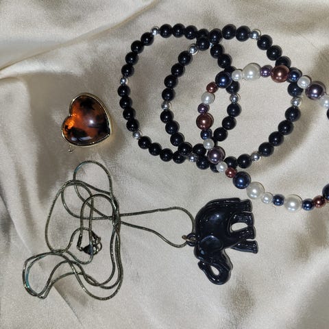 Pent brukte "elefant" smykker, selges kr. 40.- pr stk.