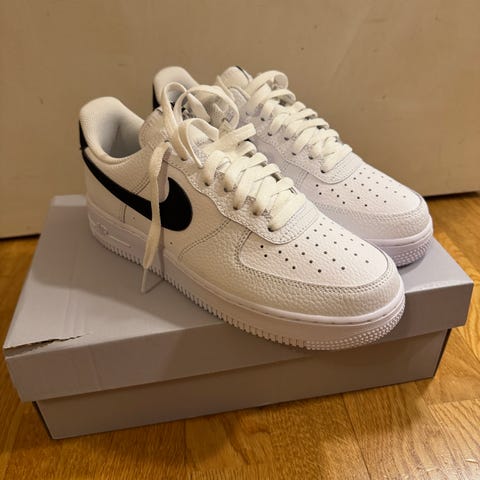 Selger Nike Air Force 1 ‘07 for 750. Skoene er lite brukt. Noen bruksmerker. Størrelse 8,5, tilsvarer størrelse 42.