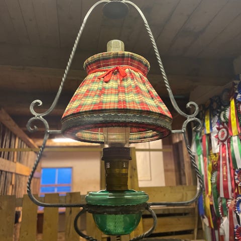 Retro stor vakker lampeskjerm i porselen med dekor av bær