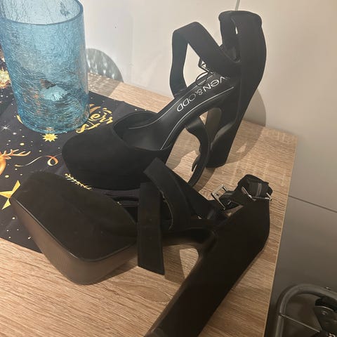 Pumps fra pin-up couture str 40. Hel-høyde 12 cm. Skoene har noen farts-striper, og noe bruksmerker under sålen.