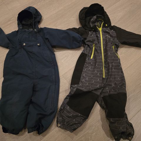 Vintersett med bukse med seler og jakke med avtagbar hette. Str 3 i Stormberg. Står str 98 i buksa. Blått og signalgrønt. Ingen hull men endel løse tråder (refleksene mest). Noe slitasje på knær og reflekser. Ingen hull. Endel lyse slitasjeflekker på det signalgrønne. Hele strikker. Er ett veldig godt sett :)