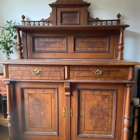 Gammelt skap med fine utskjæringer skapet er i to deler