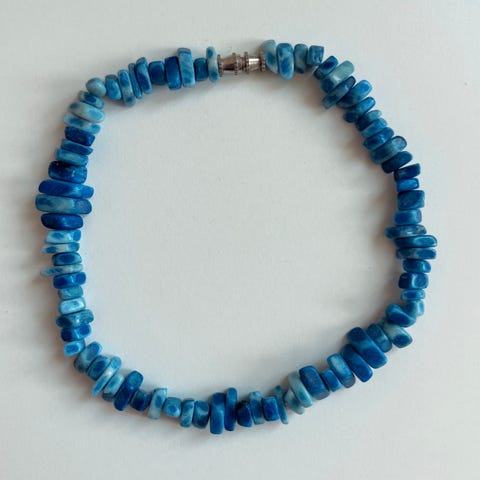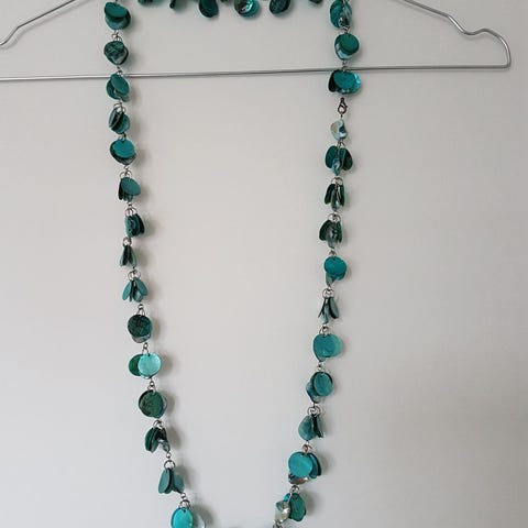 Halskjede med Abaloneskjell (19 stk, ca 25 x 15 mm). L=46 cm