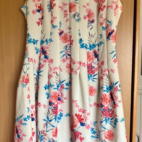 Selger helt ny rosa ermeløs kjole med fôret blondeoverdel og blomstret nederdel fra Body Flirt for 290 kr.