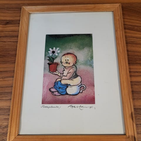 Fint bilde med treramme fra den bergenske kunstneren Hetland. Bildet heter Aida.