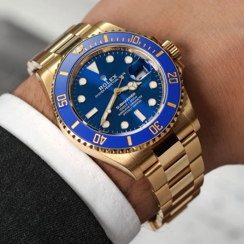Vi introduserer vår Submariner Mod helgull-fargede mod med en vanvittig nydelig blå bezel og urskive som står helt perfekt i kontrast til gullfargen! Perfekt sommerklokke!