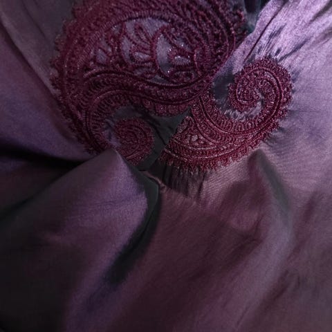 Nesten ubrukt sengeteppet sett med tynn dyne i str 180/200cm, lyse beige farget . Kommer fra røyk og dyrefritt hjem.