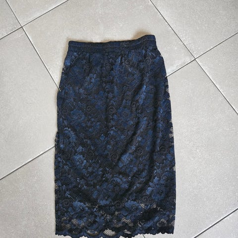 Blyantskjørt fra ganni i off white og bronse/gull. Det går til ca kneet. Super fint på og man får virkelig former, super fin på kontoret.
