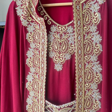 Lekker konge blå kjole kjøpt i Amman, Jordan. Lange armer og perle broderi.