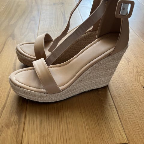 Anna Field Beige Lær Platåsandal Wedge Ubrukt