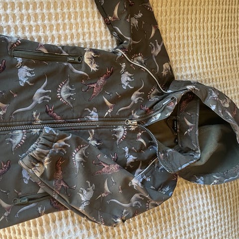 Den finnes i 2 størrelser (4-6) og (8-10) år i fargene blå og rød slik på bildet. Det er samme pris for begge størrelser.