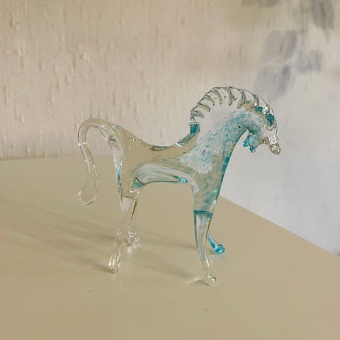 Nydelig vintage figur i glass. Hest i svært god tilstand. Papirvekt/solfanger.