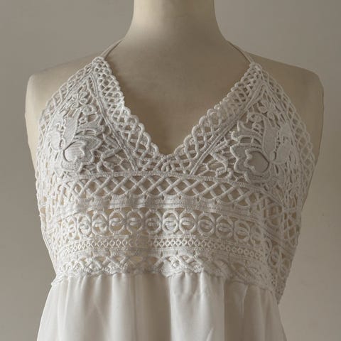 Vintage topp med skjønne hekle-detaljer -Str. L