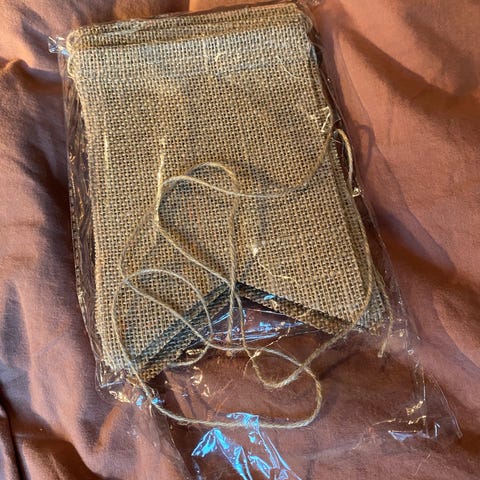 DIY banner i gull selges for 50,- Noen bokstaver er brukt opp. Har tatt bilde av alle som er igjen. Se bilder. Det følger med en nål for å tre på bokstavene. Snor følger ikke med, men vanlig gavesnor/sløyfe kan fint brukes til dette.