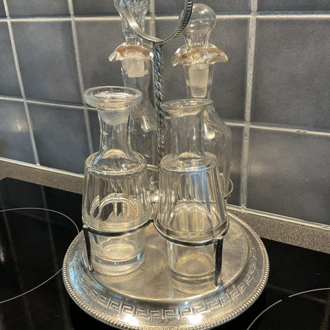 Gammel "krydderoppsats til ulike oljer. To saltkar følger med.