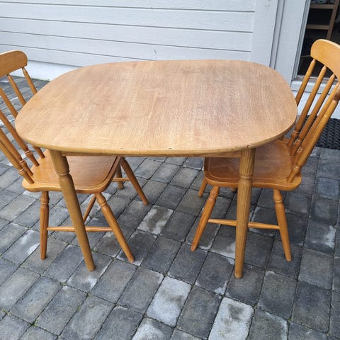 Bord med hylle under. Det har endel bruksmerker på overflaten som nok kan pusses og lakkes på ny. Usikkert hvor gammelt det er, muligens fra 1938.