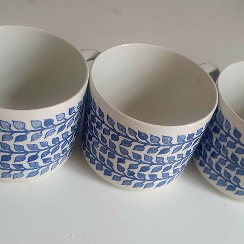 2 av koppene litt krakelert i bun1 har enn brun prikk inni.