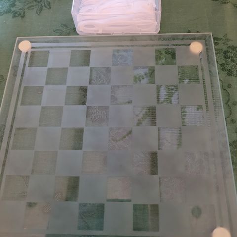 Sjakkspill av glass. Helt nytt og ubrukt.