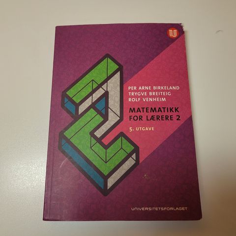 Matematikk for lærere 2. Per Arne Birkeland, Trygve Breiteig og Rolf Venheim. Universitetsforlaget 2012. 5.utgave.