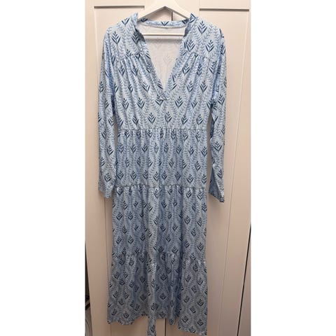 Lange ermer og skjortekrage, v-hals. Strikk nede i ermene, med volanger.