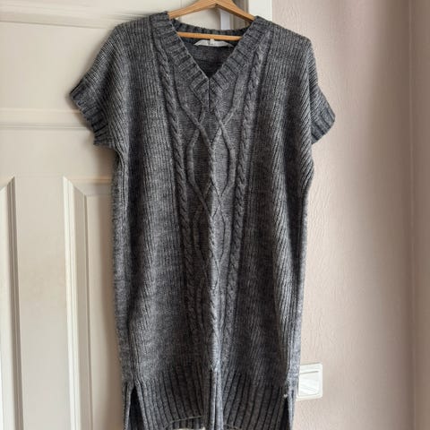 Strikkavest fra Only str. M selges 100.- Brukt en gang. Kommer ikke så godt frem på bildene, vesten er ikke grå, men i en nydelig lys grønnfarge. Fin utenpå en tynn genser eller skjorte. Kan sendes mot at kjøper betaler frakt.