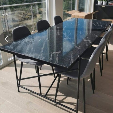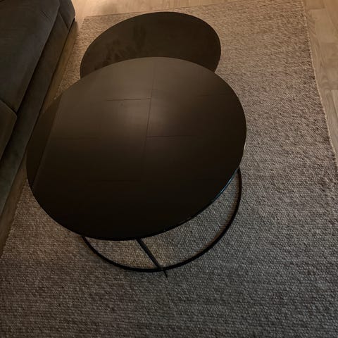 Salong bord laget av grovt rustikk treverk med herdet glassplate over. Må hentes i Spydeberg.