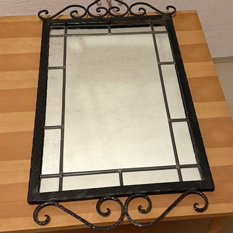 Vintage speil i smijern med blyglass og fasett slipt glass, Entresett