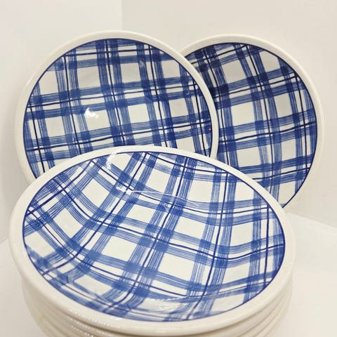 6 stk Porsgrund hvite asjetter med turkis stripe