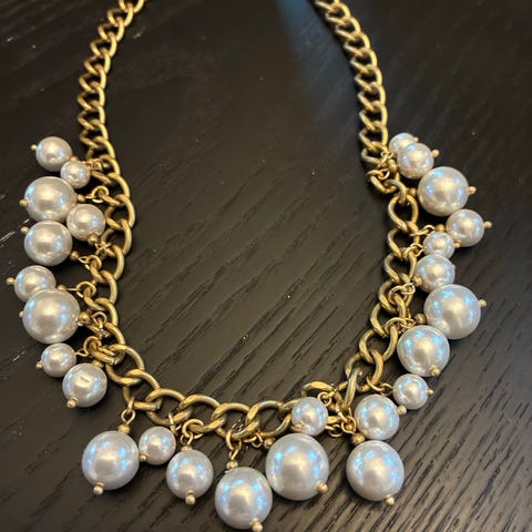 halskjede med perler og blonde gullfarget