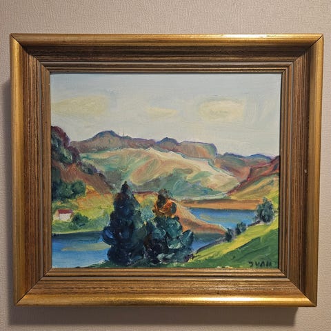 Sverre Ivan stort oljemaleri 67x78 o/l strandmotiv. Må hentes, for stort for sending