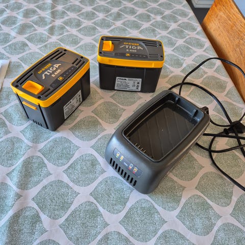 Ny litt støvete 48V lader til Stiga batteri redskap.