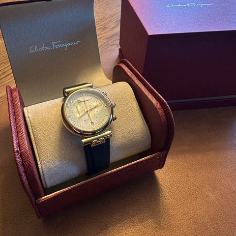 Urkjøpebevis følger med, samt et ekstra ledd til klokke reim og original eske til klokken.