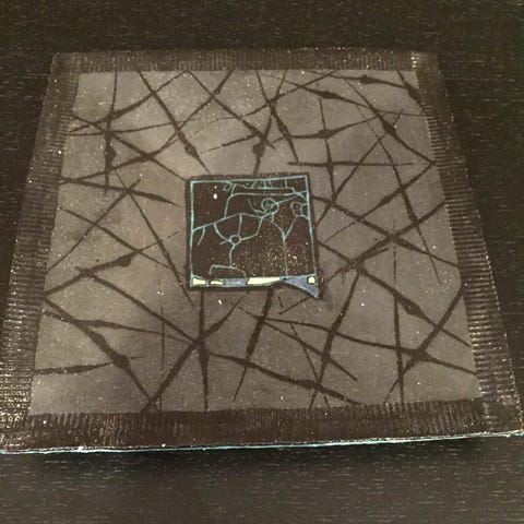 Stort fat med oppheng, dekorativt og stemningsfullt