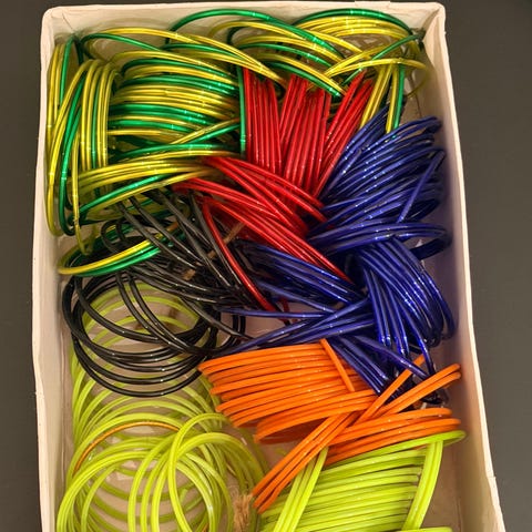 3 stk armbånd i tre selges samlet, brune med hvit, rosa og blått. Hentes i Kristiansand eller sendes om kjøper betaler frakt.