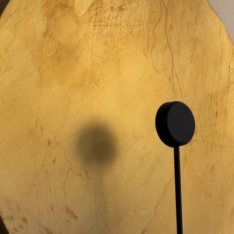 Unik bordlampe laget av tre, glass, skinn, bein, sand, marmor, e-poxy